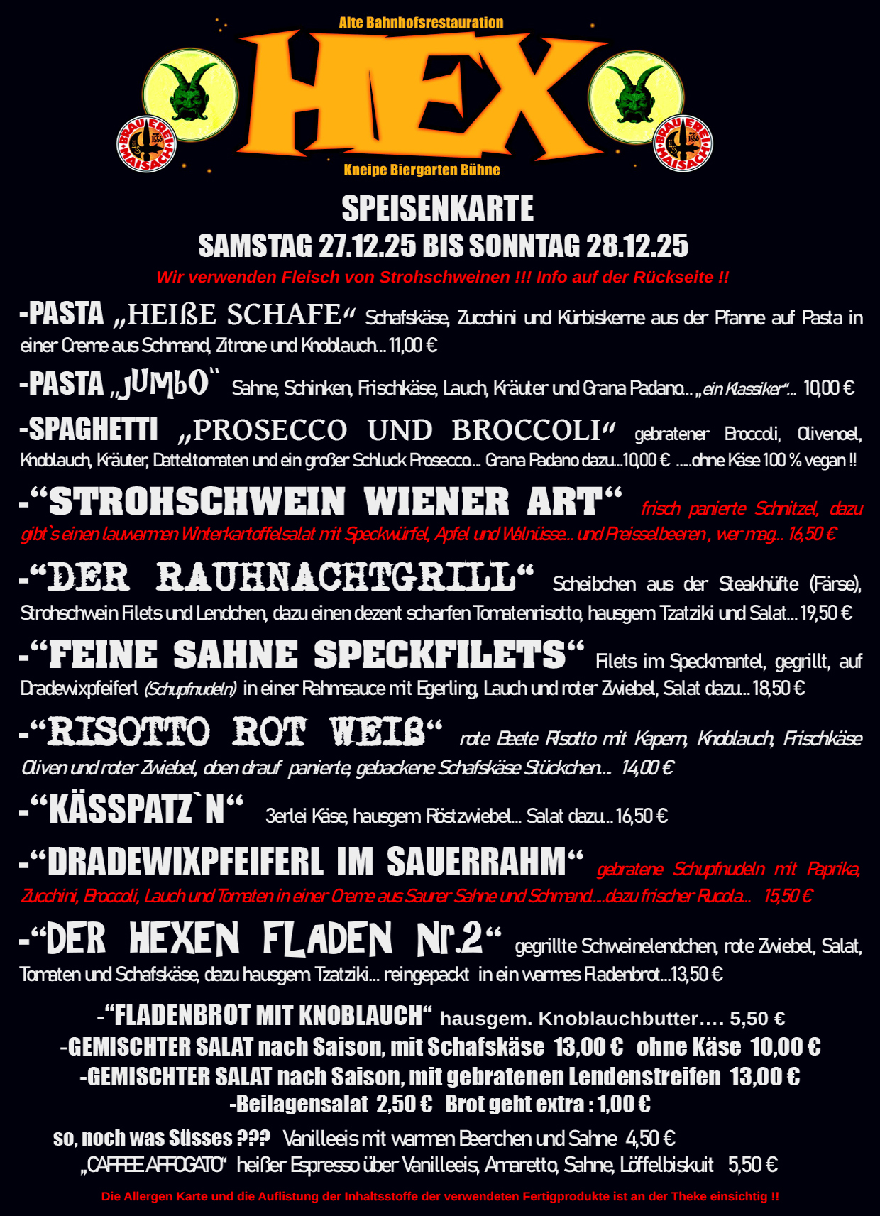 Samstag 27.12. und Sonntag 28.12.25 ab 17.30 Uhr geöffnet !!