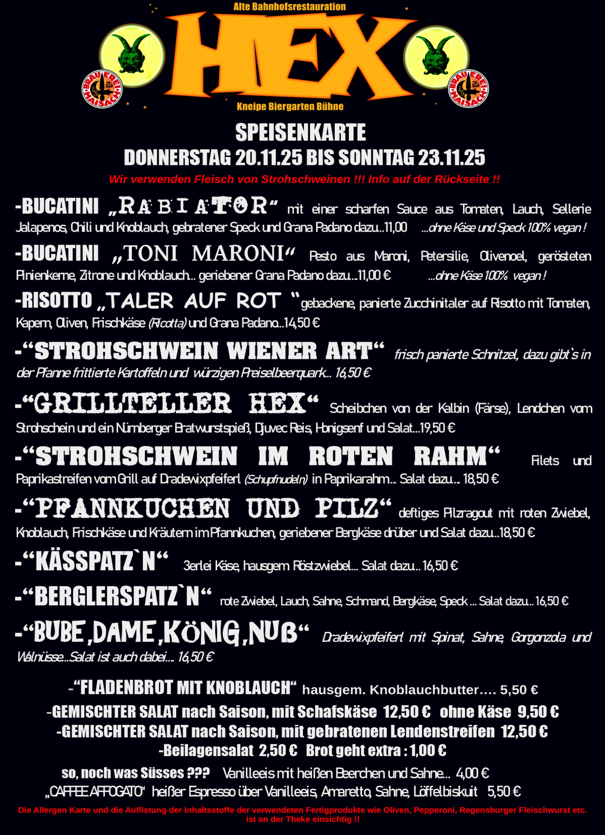 AUßERDEM KEIN FACEBOOK, KEIN X, KEIN TIKTOK, KEIN WHAT`S APP, KEIN INSTA….UND DIE HEX IST KEIN RESTAURANT, SONDERN „NUR“ EINE KNEIPE, IN DER GANZ ORDENTLICH GEKOCHT WIRD…UND „BLOß SCHNELL WAS ESSEN“ GEHT GAR NICHT…