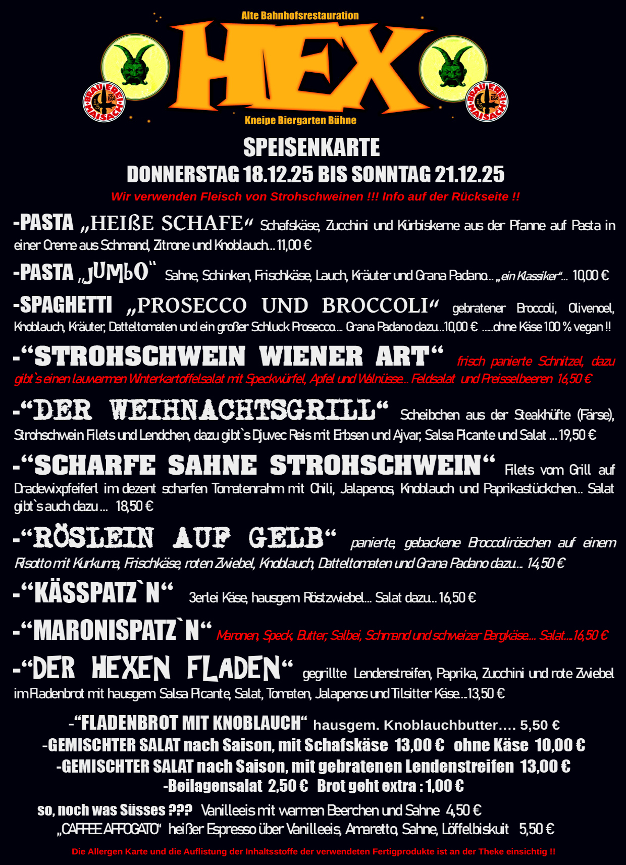 Samstag 27.12. und Sonntag 28.12.25 ab 17.30 Uhr geöffnet !!